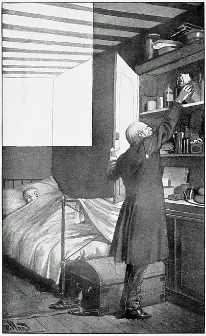 Old Jerry Cater was plainly not long for this world. Ailing for months, he at length gave in and took to his bed. Greer watched him anxiously and greedily, for it was his design, when his master went at last, to get what he could for himself. More than once during his illness old Cater had sent Greer to fetch his nephews. Greer had departed on these errands, but never got farther than the next street. He hung about a reasonable time—perhaps in the "Ship and Anchor," if funds permitted—and then returned to say that the nephews could not come just yet. Old Cater had quarrelled with his nephews, as he had with everybody else, some time before, and Greer was resolved, if he could, to prevent any meeting now, for that would mean that the nephews would take possession of the place, .jpg.webp)