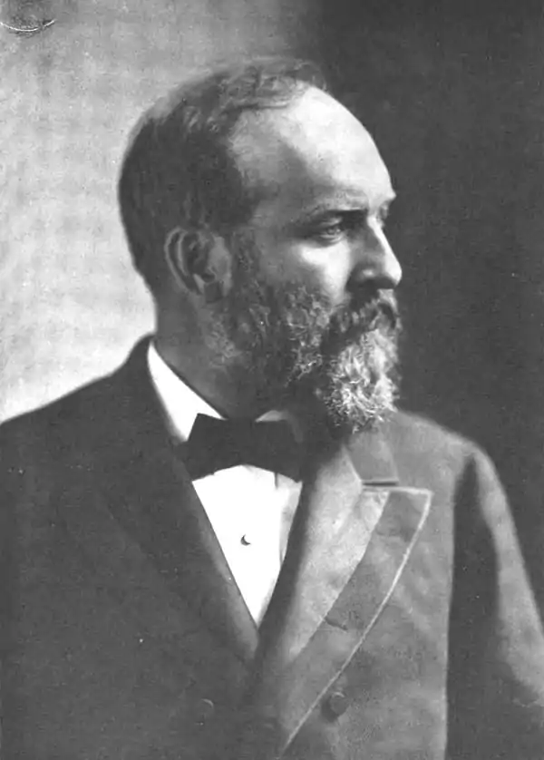 GARFIELD, James Abram, 20th President of the United States: b. Orange, Cuyahoga County, Ohio, 19 Nov. 1831; d. Elberon, N. J., 19 Sept. 1881. On his father's side he was of English Puritan descent; on his mother's, Huguenot. The father, a native of New York, settled in the “Western Reserve” in 1830 and died in 1833, leaving his widow with four small children, James being the youngest. Garfield's boyhood was passed amid the harsh but by no means destitute conditions of frontier life. He worked hard on the farm, helped in the support of the family, attended school three months each winter and read and reread every book which fell in his way. For a short time he was a driver and steersman on the Ohio Canal. Supporting himself chiefly by teaching, he studied successively at Geauga Seminary 1849, Eclectic Institute, Hiram, Ohio (now Hiram College), 1851-54, and Williams College, Mass., entering the junior class in 1854 and graduating with high honors in 1856. Returning to Ohio, he taught the classics at Hiram Institute 1856-57, and became its president 1857-59. Coincident with his teaching he studied law, was admitted to the bar in 1859 and, resigning his presidency, was elected to the Ohio State senate. The Civil War breaking out, he threw himself enthusiastically into the Northern cause, was commissioned lieutenant-colonel of the 42d Ohio and given command of a brigade, with orders to operate as an independent force in eastern Kentucky, December 1861. With a force of 1,100 men and no artillery he signally defeated 5,000 Confederates under the veteran general Humphrey Marshall, driving them from fortified positions of their own choosing, 10 Jan. 1862. For this exploit Lincoln promoted him brigadier-general. Subsequently he took part in the battle of Shiloh, in the operations around Corinth, and served with distinction on several courts-martial at Washington, one being that of Gen. Fitz-John Porter (q.v.). Appointed chief of staff to General Rosecrans, February 1863, his notable services at Chickamauga (see Chickamauga, Battle of) caused Lincoln to make him a major-general, 19 Sept. 1863. In 1862 his home district had elected him to Congress. Thus, within six years he had been president of a college, State senator, major-general and representative-elect, a combination of honors without parallel in the national annals. Upon the advice of Lincoln and Stanton he resigned his major-general's commission 5 Dec. 1863 and took his seat as a representative on December 7. In this field his talents and genius found their true sphere. He stepped to the front at once, taking a prominent part in every debate of importance and becoming an authority on questions of finance, tariff, education and constitutional rights. Always the champion of sound money, his speech in March 1866 clearly outlined the policy which resulted in the resumption of specie payments 1 Jan. 1879. An eminent contemporary has well said of Garfield's speeches, that they are a compendium of the political history of the time and would give a connected history and complete defense of the important legislation of the 17 eventful years that comprised his legislative career. He was eight times re-elected to Congress, serving on such important committees as those on military affairs and on ways and means, and was the first chairman of the Committee on Banking and Currency. In the Reconstruction period he steadily opposed the theories of President Johnson (see Johnson, Andrew); in 1876 he went to New Orleans at President Grant's request to watch the counting of the Louisiana vote, and in 1877 was chosen by acclamation one of the two members of the Electoral Commission allotted to the House of Representatives. In the 45th Congress Garfield displayed masterly qualities as a leader of opposition. His speech at Faneuil Hall, Boston, in 1878 on the national finances was circulated by thousands as a campaign document. On 13 Jan. 1880 the Ohio legislature unanimously elected him United States senator to succeed Hon. Allen G. Thurman (q.v.), and his last speech in Congress was delivered 23 April 1880. At the Republican National Convention at Chicago, 2-8 June 1880, he headed the Ohio delegation, nominated John Sherman (q.v.) for the Presidency, opposed the nomination of General Grant for a third term and was himself nominated on the 36th ballot as a compromise candidate. Contrary to all precedent, Garfield himself took part in the campaign that followed, making some 70 speeches in all, chiefly extemporaneous. At the November election he received 214 electoral votes to 155 given his Democratic opponent, General Hancock. The first months of Garfield's administration were disturbed by the opposition of the New York senators to certain of his appointments. Senators Conkling and Platt claimed the right to control the Presidential appointments in their State. This the President refused to concede. The senators resigned and appealed to their legislature to vindicate their attitude by a re-election, but failed to get it. On the morning of 2 July 1881, while in the Baltimore and Potomac station at Washington, on his way to New England, where he intended to deliver the commencement address at Williams College, President Garfield was shot by Charles Jules Guiteau (q.v.), a disappointed office-seeker. For weeks he lingered between life and death, suffering the greatest agony but bearing it with a magnificent fortitude that won the admiration and sympathy of the civilized world. A removal to Elberon, N. J., in the hope that the sea air might benefit him was of no avail. Blood poisoning set in on 15 September and he died on the 19th at 10.30 P.M. In February 1882 an impressive memorial service was held in the House of Representatives, the Hon. James G. Blaine delivering a commemorative address, which for eloquence, dignity and truth has rarely been equaled on such occasions. Garfield's body lies in a beautiful cemetery in Cleveland, Ohio, a stately monument markin