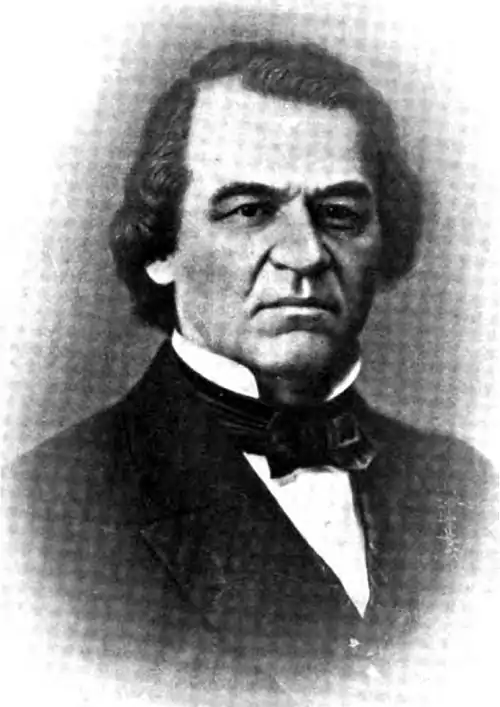 JOHNSON, Andrew, 17th President of the United States: b. Raleigh, N. C., 29 Dec, 1808; d. Carter's Station, Tenn., 31 July 1875. Johnson's father died when the boy was 5 years old, and at 10 he was apprenticed to a tailor in his native town. While at work, Johnson gained the first rudiments of an education from a gentlemen who often visited the tailor's shop and read aloud to the journeymen and the apprentices from a volume of speeches of eminent British orators. Johnson became interested and received the book as a gift from the owner and learned to read and spell at the same time. In 1824, having completed his apprenticeship, he left Raleigh and went to Laurens Court House. In 1826 he returned to Raleigh, but in September of the same year he left with his mother, whom he always showed the greatest solicitude and respect, for Greenville, Tenn. The following year he married. Encouraged and aided by his wife he learned to write and figure. Becoming interested in the problems of his fellow-workers he was elected alderman (1828), to which office he was twice re-elected. In 1830 he was elected mayor, and held the position for three terms. He was also chosen by the County Court as trustee of Rhea Academy, which he held until he entered the State legislature. In 1839 he took an active part in the adoption of a new State constitution which greatly enlarged the freedom of the masses and guaranteed freedom of speech and of the press. The next year he was elected to the State legislature from the counties of Washington and Green where he was especially pronounced in his opposition to the wild schemes of internal improvements then in vogue. Defeated in 1837 for re-election, he was returned in 1839 when the State realized the justice of his position in view of the crisis of 1837. Johnson canvassed eastern Tennessee for the Democratic candidate in 1840, and served as presidential elector-at-large. In the following year he entered the State senate, signalizing his advent by the introduction of a judicious measure for internal improvements. In 1843 he was nominated from the first district for Congress, and in December took his seat in the national House of Representatives, which he continued to hold for 10 years. While in the lower house he supported a bill for refunding the fine imposed on General Jackson, the annexation of Texas, the war measures of Polk's administration, and a homestead measure, and opposed all schemes of internal improvement when local in scope and the tariff of 1842. On 2 Aug. 1848, he made a speech setting forth his ideas with regard to the President's veto power. “A veto as exercised by the executive,” he declared, “is conservative and enables the people through their tribunician officer, the President, to arrest or suspend for the time being unconstitutional, hasty and improvident legislation until the people, the sovereigns in this country, have time and opportunity to consider its propriety.” This utterance was made the theme of an interesting article in the Democratic Review in its January issue. Returning to his own State he was chosen for governor in 1853. His inaugural excited much criticism for its ultra radical statements. Two years later he was elected to the United States Senate. As senator he gained special distinction in advocating a homestead measure, only to see his efforts thwarted by President Buchanan.