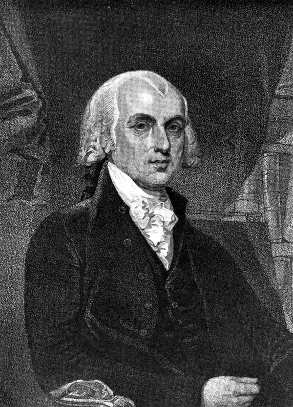 MADISON, James, fourth President of the United States: b. Port Conway, Va., 1751; d. Montpelier, Va., 28 June 1836. Madison was the eldest son of James Madison, a Virginia planter, and of Nelly Conway, daughter of Francis Conway, of King George County, Va. His father, a man of independent means, lived on an estate now known as Montpelier in Orange County. James was born at Francis Conway's home on the Rappahannock while his mother was on a visit to her parents. His educational advantages were excellent for the times; he attended the school of a Scotchman, Donald Robertson, was well prepared for college by the clergyman of the parish, the Rev. Thomas Martin, and entered Princeton in 1769. His application to his studies was excessive, and was in part the cause of later ill health; he succeeded, however, in taking his studies of the last two years in one year and took his B.A. degree in 1771. He remained at Princeton for another year doing special work in Hebrew under Dr. Witherspoon, the president. After his return home he tutored his younger brothers and began a systematic course of reading in theology, philosophy and law. At this time his study of Hebrew and theology seem to indicate a desire to enter the ministry, but he soon abandoned this and prepared himself for the legal profession and for public service. His theological studies bore good fruit later as is evidenced by the stand he took for religious liberty.