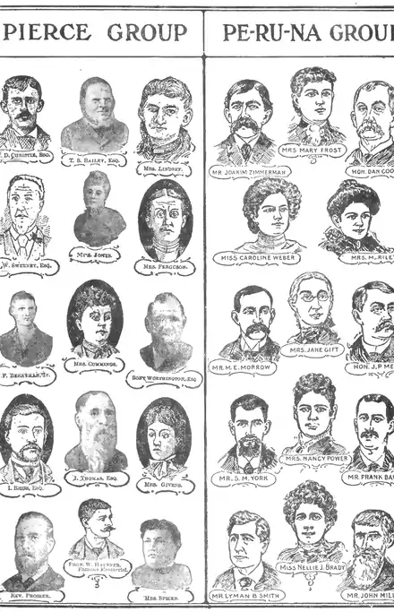 I found the advertiser to be a woman, the coarseness of whose features was only equaled by the vulgarity of her manners and speech, and whose self-assertiveness was in proportion to her bulk. She proposed that I set about securing testimonials to the excellent qualities of Peruna, which she pronounced 'Pay-Runa,' for which I was to receive a fee of $5 to $10, according to the prominence of 'the guy' from whom I obtained it. This I declined flatly. She then inquired whether or not I was a member of any social organizations or clubs in the city, and receiving a positive answer she offered me $3 for a testimonial, including the statement that Pay-Runa had been used by the members of the Southern Athletic Club with good effects, and raised it to $5 before I left.