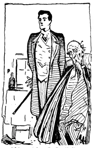 As Jimmy led the older man out firmly by the arm the little mob would have followed. But the policeman who has touched coin is a different animal from a policeman before feeding time. He savagely struck at the dirty lads and frowsy women who made up the little assembly, and cleared them off in loud tones, aiming a violent kick which just missed the little child who dodged it. The gentlemen must be left in peace. He touched his helmet again to the said gentlemen. He very tactfully sauntered slowly behind as Jimmy hurried his prize rapidly down the alley and into the broad street outside.