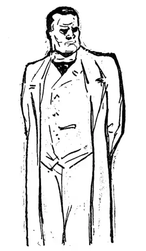 George Babcock remained after all his escapades and alarms—such as they may have been—a man of energy and of singular organising power, an Atheist of course, and one possessed both of clear mental vision and a sort of bodily determination that would not fail him until his body failed. His face and his shoulders were square, his jaw too was strong, the looseness of his thick mouth was what one would expect from what was known about him by those who knew. His eyes were fairly steady, occasionally sly; his brows and forehead handsomely clean; his hair thick and strongly grey.