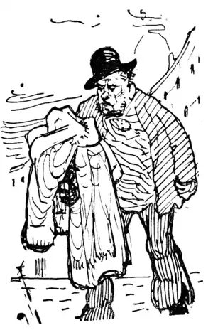 The Man with the Broken Nose found himself a moment later standing in the street with one sovereign in his hand for a twenty-guinea garment, and looking at the shut door and the meaningless, dirty windows which contained his prize.