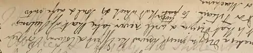 - ↑ Written be pencil and covered with another text written by pen above. This was deciphered and printed by G. Keynes for the first time in 1966. In his opinion it refer to the Decalogue and the 7th and 10th Commandments (7th: Thou shalt not commit adultery; and 10th: You shall not covet your neighbor's house. You shall not covet your neighbor's wife, or his manservant or maidservant, his ox or donkey, or anything that belongs to your neighbor.). - Ed. of Wikisource.