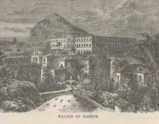 The Greek throne, with its unpromising adjuncts of a ragged population of ingenious rascals who were out of employment eight months in the year because there was little for them to borrow and less to confiscate, and a waste of barren hills and weed-grown deserts, went begging for a good while. It was offered to one of Victoria’s sons, and afterwards to various other younger sons of royalty who had no thrones and were out of business, but they all had the charity to decline the dreary honor, and veneration enough for Greece’s ancient greatness to refuse to mock her sorrowful rags and dirt with a tinsel throne in this day of her humiliation—till they came to this young Danish George, and he took it. He has finished the splendid palace I saw in the radiant moonlight the other night, and is doing many other things for the salvation of Greece, they say.