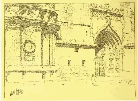 Unabashed, my imp hippety-hopped to the high altar, never forgetting the genuflection as he passed and repassed; but, catching my admiring eyes fixed upon him, from that time on he covertly wriggled his wicked little nose as he bent his pious little knee to the unseen Deity. His arrangement of the altar seemed correct to my untutored eye, although at the last moment, as a scale of tiny silver bells rang out sweetly and I caught the red glow of priests' robes from the cloisters, the empurpled official rushed to the altar, whisked away one crucifix, put another in its place, made his wand once more felt upon the small demon, and returned in time to head the procession, accompanied by the magnificent roll of the organ.