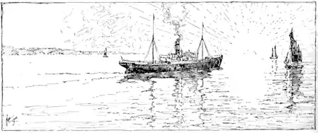 Six hours later, as the sun sank behind the bare mountains, the Infanta steamed from out the lower bay. Up in the bow of the ship, secured by hawsers, could be discerned two motor-cars. The evening was divine, and as we sat in our accustomed places in lieu of steamer-chairs, we planned our course of action for to-morrow, or to-morrow, or to-morrow.