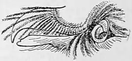 | Showing the position and external appearance of the ear of a great horned owl; also the filamentous feathers about the beak. |