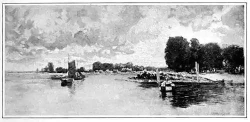 Why I stop at the Bellevue (apart from its being one of my Inns) is that from its windows I can not only watch the life of the tawny-colored, boat-crowded Maas, but see every curl of smoke that mounts from the chimneys of Papendrecht strung along its banks. My dear friend, Herr Boudier, of years gone by, has retired from its ownership, but his successor, Herr Teitsma, is as hearty in his welcome. Peter, my old boatman, too, pulled his last oar some two years back, and one "Bop" takes his place. There is another "p" and an "e" tacked on to Bop, but I have eliminated the unnecessary and call him "Bob" for short. They made Bob out of what was left of Peter, but they left out all trace of William.