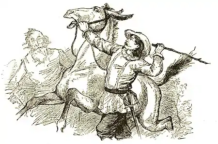 Then followed a confusion of kicks, cuffs, tramplings and plungings, accompanied by a thunderous intermingling of volleyed curses, and finally a bitter apostrophe to the mule, which must have broken its spirit, for hostilities seemed to cease from that moment.
