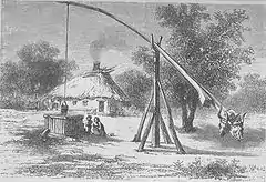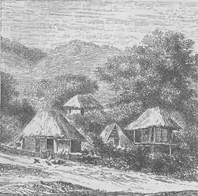 The Moldo-Wallachian villages present an unfavorable contrast to those of Servia. A traveler who traversed the principalities not long ago describes them as consisting of "huts half buried in the earth," betraying a miserable condition of the people. They are, indeed, almost a subterranean community. In some districts "these subterranean villages have been so effectually concealed, with grass growing on the top, that were it not for the tell-tale smoke we see making its way upward from the earth, like a spent volcano, we might ride over them without suspecting that several human families were living beneath." Each village has its common granary—a curious edifice about six feet high and several hundred feet long; it is made of open trellis-work, so that the grain may be properly dried. This is always the most conspicuous object which catches the traveler's eye.
