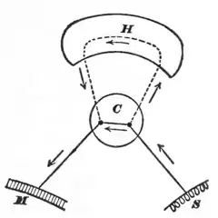 The hemispheres would then seem to be the seat of memory. Vestiges of past experience must in some way be stored up in them, and must, when aroused by present stimuli, first appear as representations of distant goods and evils; and then must discharge into the appropriate motor channels for warding off the evil and securing the benefits of the good. If we liken the nervous currents to electric currents, we can compare the nervous system, C, below the hemispheres to a direct circuit from sense-organ to muscle along the line S . . . C . . . M of Fig. 2 (p. 21). The hemisphere, H, adds the long circuit or loop-line through which the current may pass when for any reason the direct line is not used.