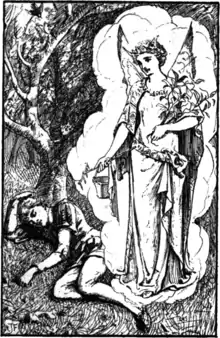Father Lawrence, conceiving himself to be addressed by an Angel, falls on his knees before him