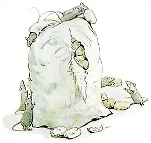 Presently the rats came back and set to work to make him into a dumpling. First they smeared him with butter, and then they rolled him in the dough.