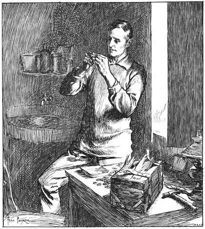 Among the passengers by the last train down from London that night was Pringle. He carried a cricketing-bag, and when safely inside the studio he unpacked first a sailor's jersey, peaked cap and trousers, then a small but powerful spade, a very neat portable pick, a few fathoms of manilla rope, several short lengths of steel rod (each having a screw-head, by which they united into a single long one), and finally a three-inch prismatic compass.