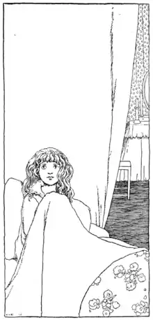 Under the snow-white coverlet, upon the snow-white pillow, lay the most beautiful little girl that Tom had ever seen. Her cheeks were almost as white as the pillow, and her hair was like threads of gold spread all about over the bed. She might have been as old as Tom, or maybe a year or two older; but Tom did not think of that. He thought only of her delicate skin and golden hair, and wondered whether she was a real live person, or one of the wax dolls he had seen in the shops. But when he saw her breathe, he made up his mind that she was alive, and stood staring at her as if she had been an angel out of heaven.