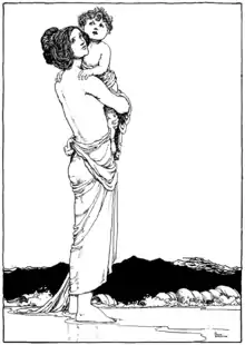 Then he asked her where she lived, and she said far away by the sea. And Tom asked her about the sea, and she told him how it rolled and roared over the rocks in winter nights, and lay still in the bright summer days, for the children to bathe and play in it; and many a story more, till Tom longed to go and see the sea and bathe in it likewise.