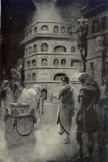 But now stepping forward suddenly from the shadows to which she had retired, a lady appeared, threw herself between the two contestants, and changed the fate of the combat. It was Antonia, the daughter of the famous triumvir, the revered widow of Drusus.
