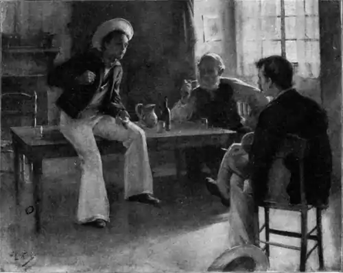 “No, sir, he's ashore to-day,” said the sailor. “I took up a bag for him to the 'otel.”