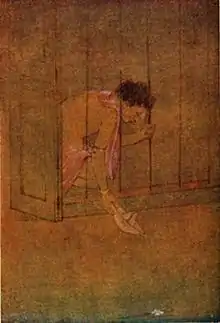 In the meanwhile the Sleep-stealer came and, snatching sleep from baby's eyes, flew away.