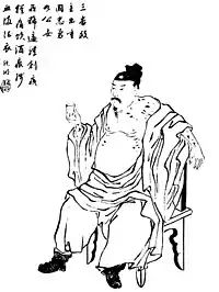 Taishi Ci was in the process of leaving, with his army following him for 30 li without catching up.[6] After Taishi Ci had gone 50 li,[7] his men and horses became exhausted. Suddenly, the sound of shouting could be heard from the nearby reeds. Ci was about to flee, but a rope for capturing horses toppled his horse, and Taishi Ci was captured alive. He was taken to the camp. When Ce learned that Taishi Ci had been brought to him, he personally came out of the camp to order the soldiers to disperse, and he untied him. He also gave him a brocade robe to wear, and invited him into the camp, saying to him, "I know that you are an upright person. Liu Yao was foolish, and was unsuited to be a general, which is why he was defeated." |