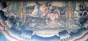 Having finished their verses, they embraced each other and began to cry. Li Ru barked, "Chancellor of State is impatiently waiting for us to report back to him, but both of you are stalling; who do you think will save you?" The empress dowager cursed, "That scoundrel Dong is forcing a mother and her son, and heaven will not protect him! You are helping an evil tyrant, and your whole family shall certainly be wiped out!" Ru was furious, and grabbed the empress dowager with both hands, throwing her straight down the stairs. He ordered his soldiers to hang Consort Tang, and to kill the young emperor by pouring the poisoned wine down the his throat. He then reported back to Dong Zhuo. Zhuo ordered their bodies be buried outside of the city. From then on, he entered the palace each evening and had his way with the ladies-in-waiting of the palace; he then spent the night sleeping on the dragon bed.[16] He led his troops out of the city to the area around Yangcheng. Around the second lunar month,[17] the villagers were holding their springtime earth god festival.[18] All of the men and women were gathered together; Zhuo ordered his soldiers to surround and kill them. They seized the women and spoils, and loaded them onto their carts. They also hung more than 1,000 severed heads on the carts. They made their way back to the capital in a long caravan, and spread the word that they had returned from a major victory against bandits. They burned the human heads at the gates of the city, and the women and spoils were divided amongst all the soldiers. |