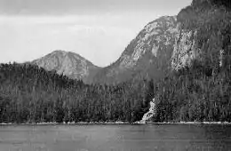 We arrived at Wrangell July 14, and after a short stop of a few hours went on to Sitka and returned on the 20th to Wrangell, the most inhospitable place at first sight I had ever seen. The little steamer that had been my home in the wonderful trip through the archipelago, after taking the mail, departed on her return to Portland, and as I watched her gliding out of sight in the dismal blurring rain, I felt strangely lonesome. The friend that had accompanied me thus far now left for his home in San Francisco, with two other interesting travelers who had made the trip for health and scenery, while my fellow passengers, the missionaries, went direct to the Presbyterian home in the old fort. There was nothing like a tavern or lodging-house in the village, nor could I find any place in the stumpy, rocky, boggy ground about it that looked dry enough to camp on until I could find a way into the wilderness to begin my studies. Every place within a mile or two of the town seemed strangely shelterless and inhospitable, for all the trees had long ago been felled for building-timber and firewood. At the worst, I thought, I could build a bark hut on a hill back of the village, where something like a forest loomed dimly through the draggled clouds.