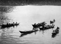 Yonder you see a canoe gliding out from the shore, containing perhaps a man, a woman, and a child or two, all paddling together in natural, easy rhythm. They are going to catch a fish, no difficult matter, and when this is done their day's work is done. Another party puts out to capture bits of driftwood, for it is easier to procure fuel in this way than to drag it down from the outskirts of the woods through rocks and bushes. As the day advances, a fleet of canoes may be seen along the shore, all fashioned alike, high and long beak-like prows and sterns, with lines as fine as those of the breast of a duck. What the mustang is to the Mexican vaquero, the canoe is to these coast Indians. They skim along the shores to fish and hunt and trade, or merely to visit their neighbors, for they are sociable, and have family pride remarkably well developed, meeting often to inquire after each other's health, attend potlatches and dances, and gossip concerning coming marriages, births, deaths, etc. Others seem to sail for the pure pleasure of the thing, their canoes decorated with handfuls of the tall purple epilobium.