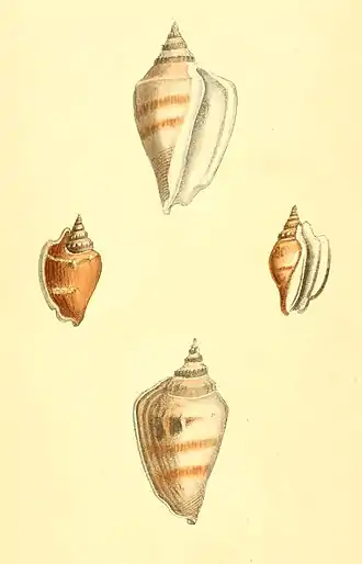 - Shell ventricose; base with a short canal, which is either emarginate or truncate; external lip dilated into a simple wing, notched at the base, and prominent above.