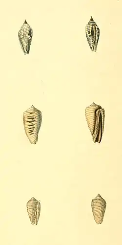 - Shell coniform. Spire very short. Outer lip simple. Columella or pillar plaited. Aperture linear, narrow, longer than the spire.