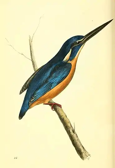The Kingsfishers have such a general similarity of form, that the most casual observer is able to distinguish them: a very long straight bill, short wings, and (in general) a shorter tail with very small legs, are the prominent distinctions of such as are usually seen; and the richness of plumage that generally pervades them cannot be better exemplified than in our own beautiful species, the common Kingsfisher, not unfrequent in many parts of England.